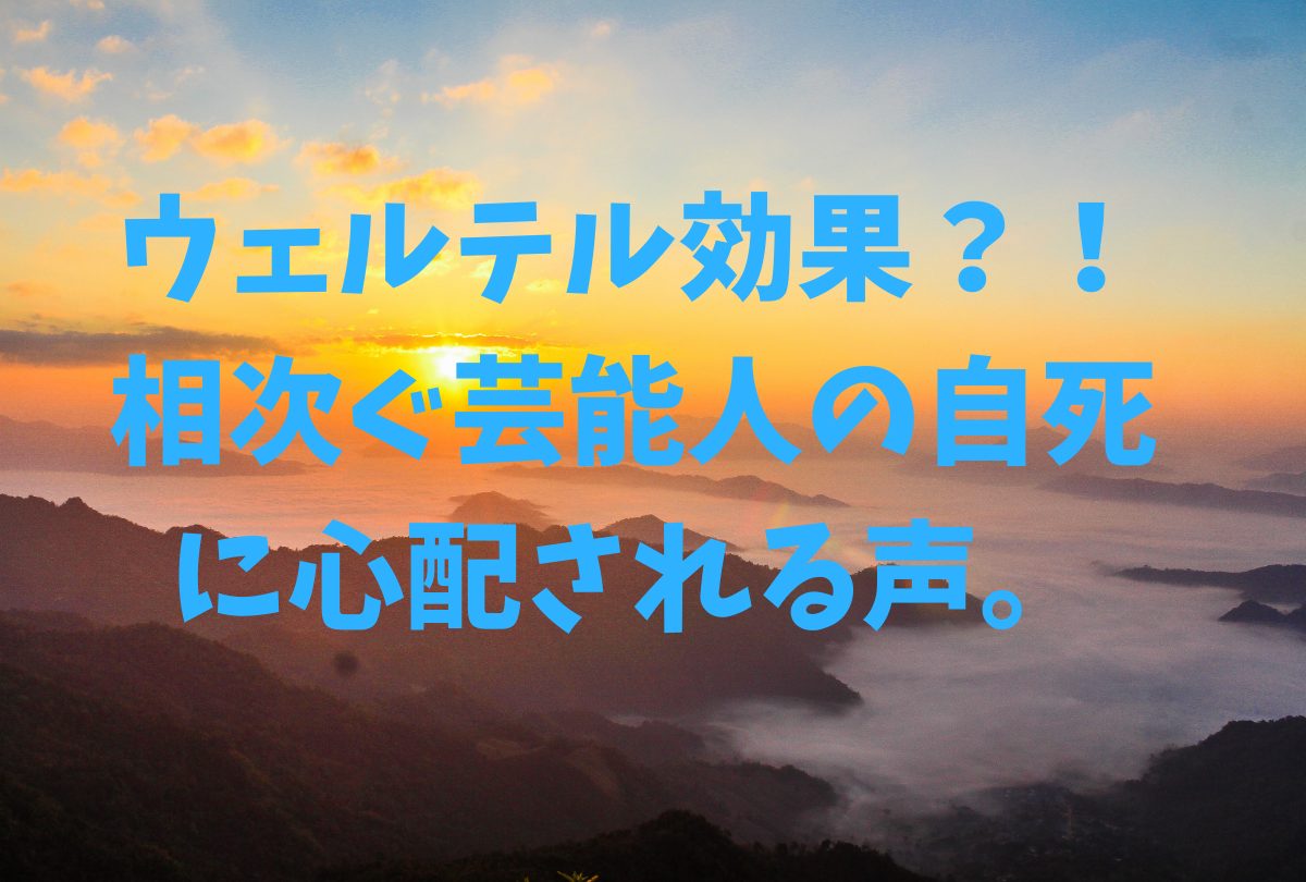 今年はコロナで志村けんさん、岡江久美子さんなど様々な著名人が旅立ち衝撃を受けました。ですがそれ以上に相次ぐ最近の芸能人の自死が気になりますね。SNSではウェルテル現象と呼ばれる単語が聞かれます。一体どのようなものなのでしょうか?